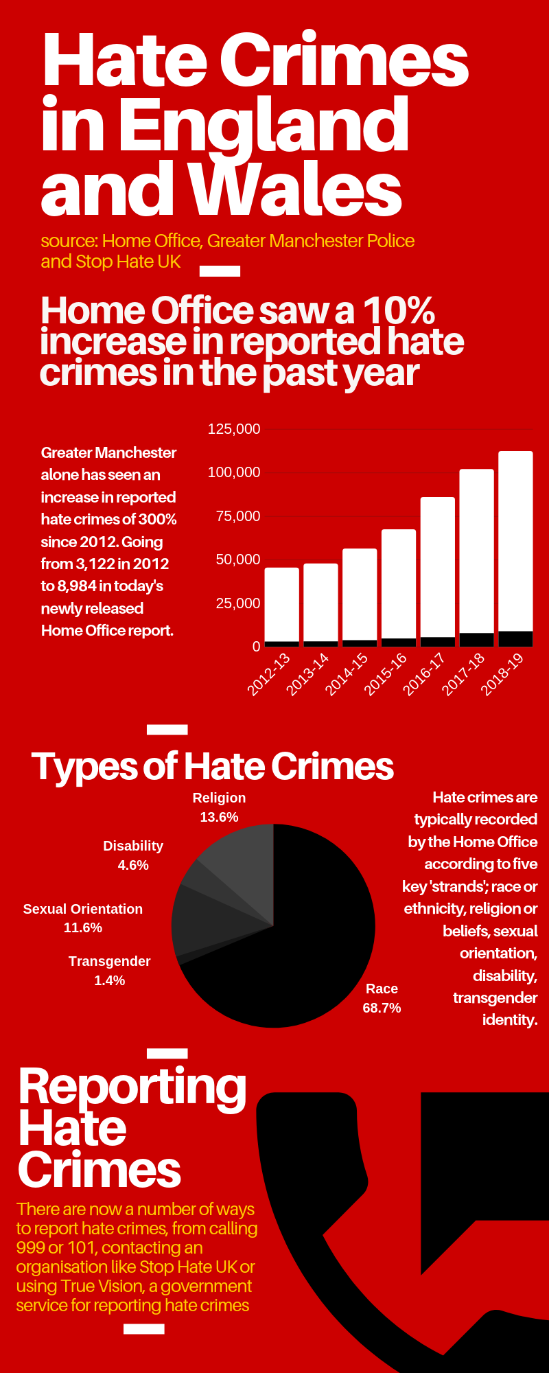 New Home Office statistics have revealed Greater Manchester has the second highest numbers of reported hate crimes in England and Wales, only behind London.
