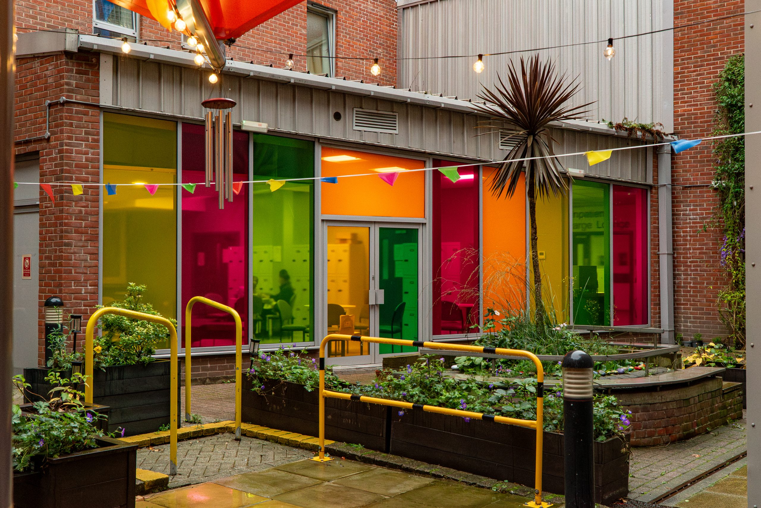 On a day so grey it could sulk, Salford still somehow radiated. Pastel light bounced off the windows of the Ladywell building, colours that local artist Sian Elizabeth, had carefully chosen to brighten the hospital’s outdoor space.