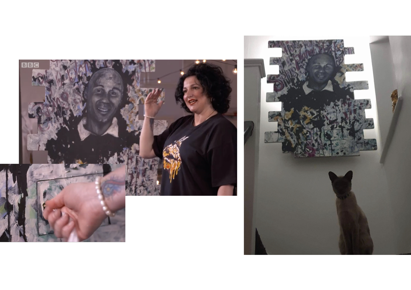 “We’ve actually still got that piece of artwork up in the hallway, and it still means a lot to us. What was so nice about what Fanny did for us was putting in the boxes so that you can put any memories or keepsakes within the artwork. It was so unique, and it captured us straight away.”