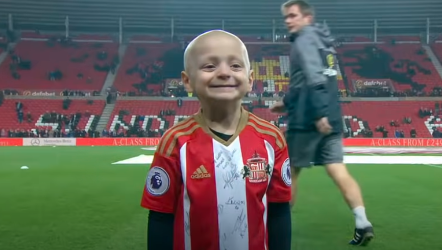 Bradley, who was a huge Sunderland fan, struck up a remarkable friendship with striker Jermain Defoe, and was a mascot for the club and England.
