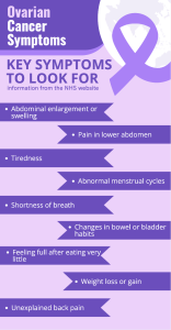 Women are being encouraged to check for symptoms that include persistent bloating, pelvic or abdominal pain, as well as difficulty eating or feeling full quickly.