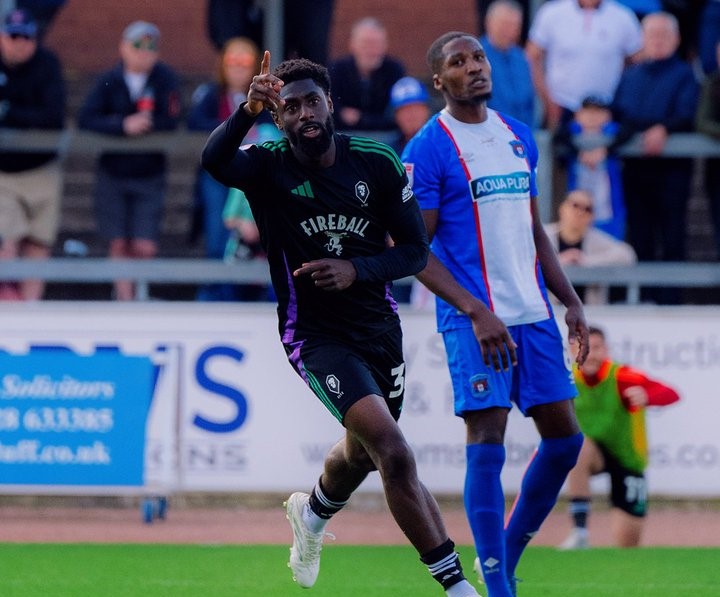 Adelakun carried the ball on the left. He found N’Mai in the box who played a give and go back to the attacker. Adelakun elected to shoot towards the near post of Breeze catching the keeper off guard, and clawing Salford back into the match.