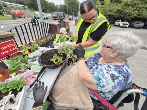 With the gentle guidance of staff and volunteers, everyone got stuck in, planting flowers and building new memories, with Gary, the handyman, also working his magic building new planters.