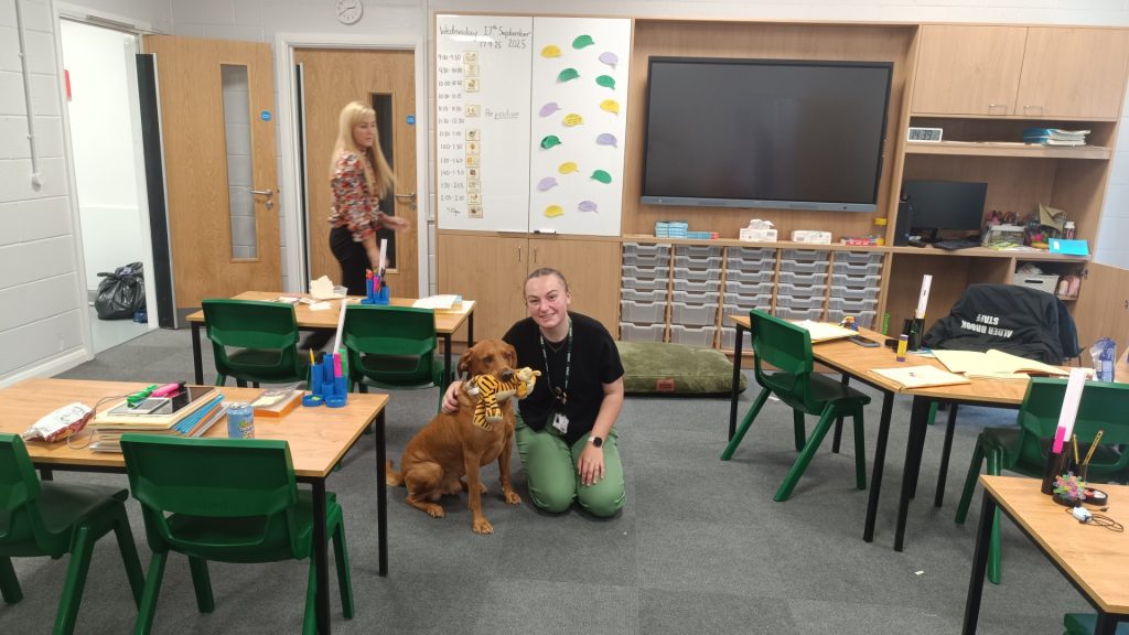 Meanwhile, teacher Chloe Ayre owns Ruud, Alder Brook’s original therapy dog. She says that the children work to higher standards in the presence of their four-legged friends.