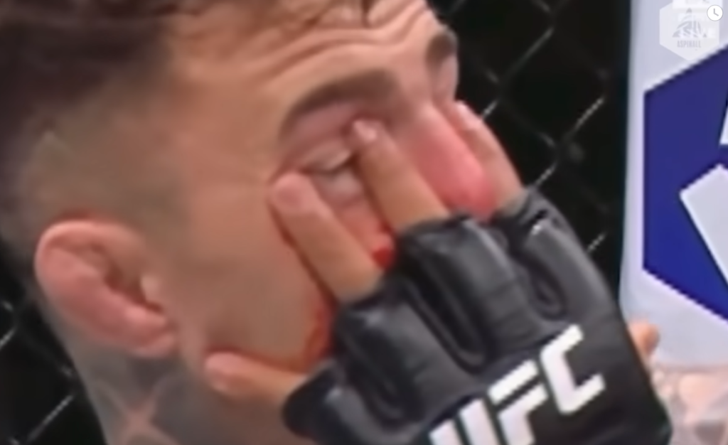 Aspinall reacted on his YouTube channel under the banner ‘The truth behind Tom Aspinall’s UFC 321 Eye Poke’.